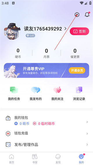 2、在个人中心,点击右上角【设置】图标,进入设置界面。