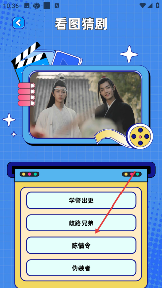 3、在关卡选择页,点击【目标关卡】,进入该关卡的看图猜剧答题界面。