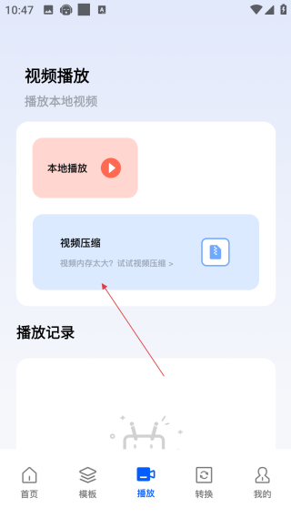 2、在播放页,点击【视频压缩】选项,进入选择视频的文件界面。