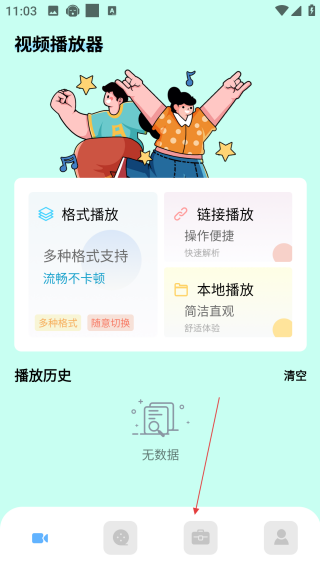1、在视频播放器页,点击【底部对应图标】,进入工具库的功能界面。