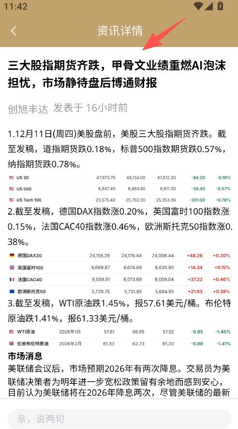 2、设有资讯详情功能,点击目标资讯条目,查看资讯的具体内容(如市场数据、行业动态)。