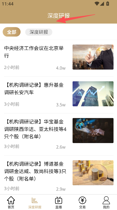 3、提供深度研报功能,进入对应板块,浏览中央经济会议、机构调研等研报的详细内容。