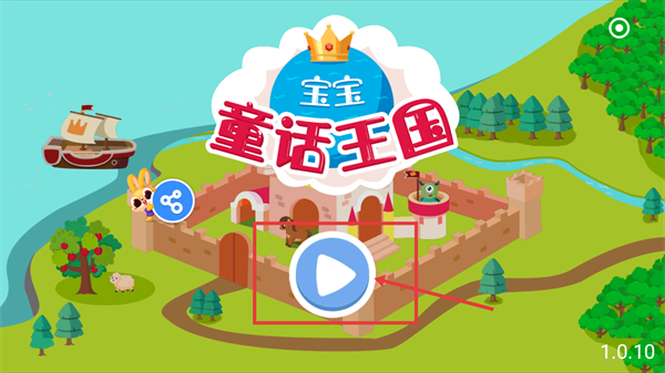 1、看到【宝宝童话王国】界面,点击红色框选的播放按钮,进入童话主题互动关卡,开启本次童话场景的探索挑战。