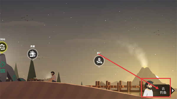 1、在主场景点击【去钓鱼】选项,可前往对应玩法区域,同时场景内的【房屋】【船厂】等功能可后续解锁。