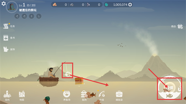 2、钓鱼玩法兼具实用性与策略性,钓获的鱼类可换取工具钻石,也能作为诱饵钓取更大目标,成为前期重要的资源获取渠道。
