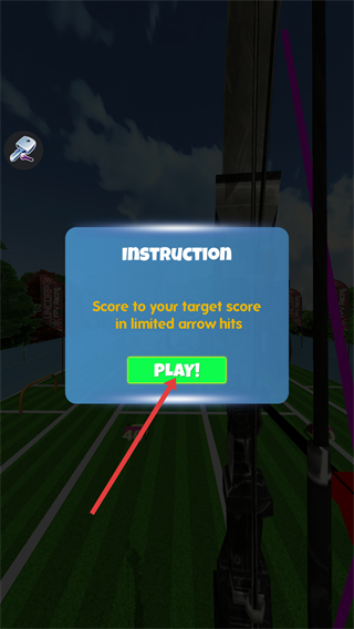 2、看到【INSTRUCTION】提示弹窗,了解“有限箭矢内达目标分数”规则后,点击【PLAY!】按钮,进入具体的射箭关卡。
