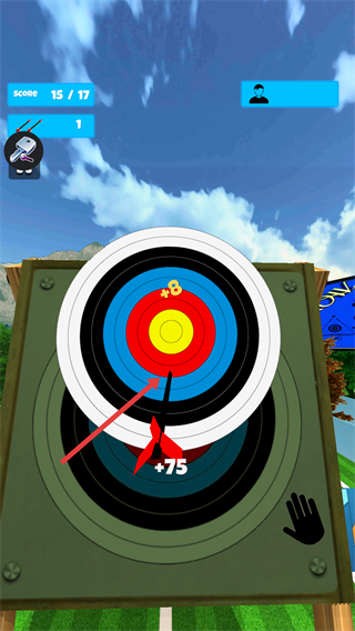 3、在射箭关卡中,瞄准靶心不同区域射击,命中后获取【+8】【+75】等分数,积累分数以达成当前关卡的目标分值。
