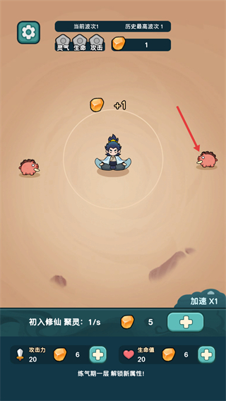 2、战斗中击败出现的小妖(如刺猬怪),可获得奖励,同时提升【初入修仙-聚灵】效率。