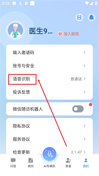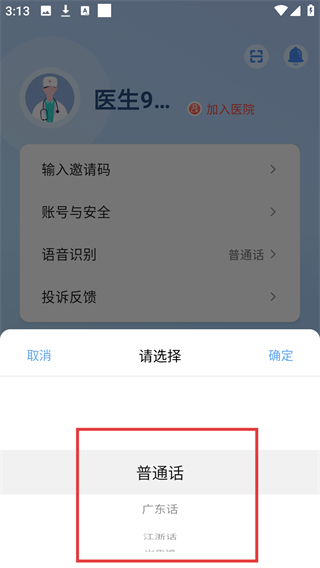 2、进入个人中心后,找到【语音识别】选项并点击,可弹出语言选择弹窗。