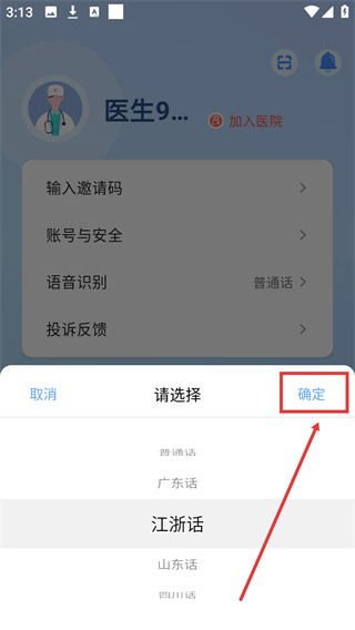 3、在语言选择弹窗中,找到【江浙话】选项并点击,可选中该语种作为语音识别的语言类型。