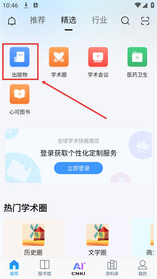 1、在界面上方找到【出版物】选项并点击,可进入对应板块。
