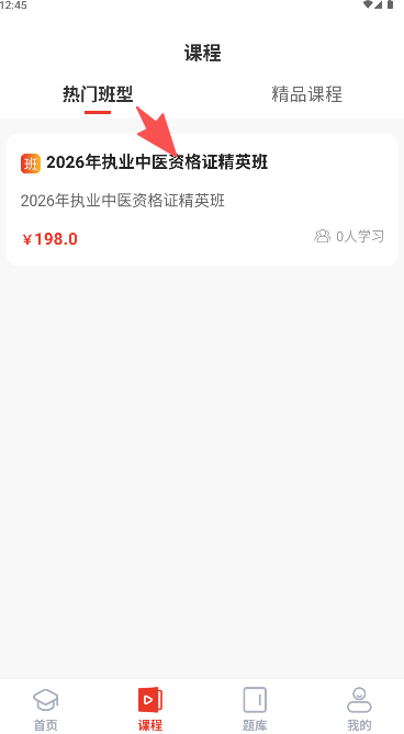 2、点击底部导航栏的“课程”进入班型与课程选择界面。