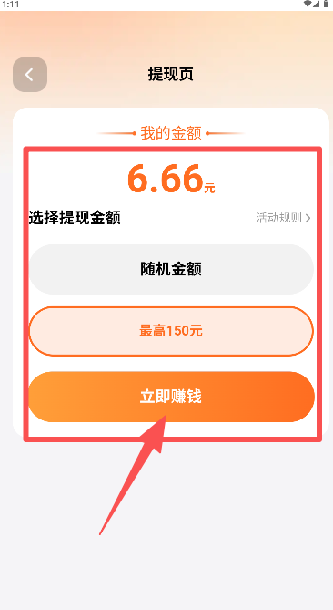 3、点击底部“立即赚钱”按钮完成任务获取提现资格。