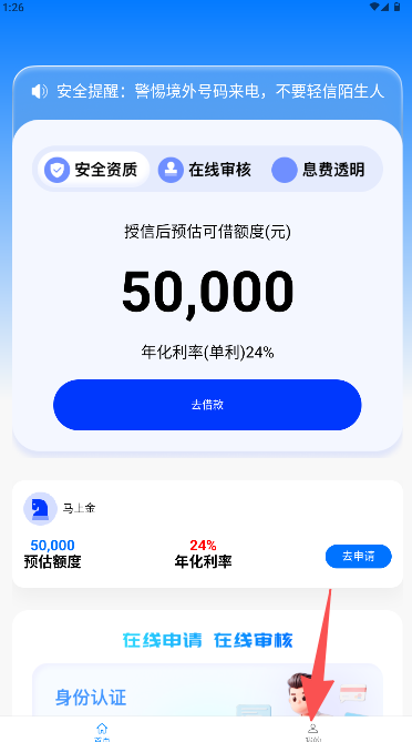 1、聚焦于提供标准化小额个人借款服务,首页清晰展示预估额度与核心服务承诺,路径明确。