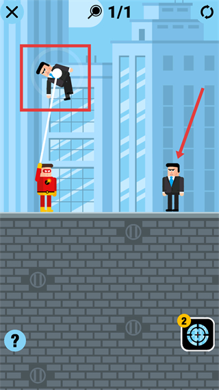 1、进入关卡后,长按箭头所指敌人,准备牵引敌人。