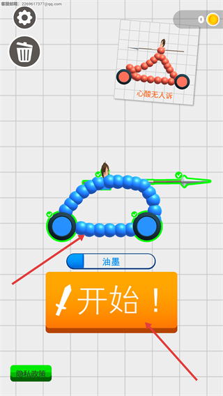 1、进入编辑界面后,先操作蓝色轮子调整造型,再点击【油墨】按钮填充颜色,可参考上方【心酸无人诉】的示例造型来匹配。
