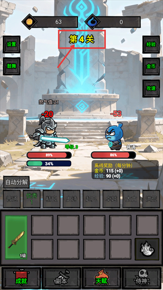 4、推进到【第4关】时,留意【怒气值-21】的积累,同时借助已装备的武器提升输出,应对敌方更高伤害。