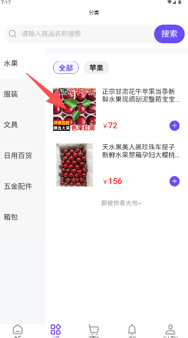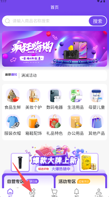 1、在首页底部导航栏点击“分类”进入商品分类页面。