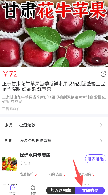 3、在详情页确认规格后,点击“立即购买”按钮,完成商品下单流程。
