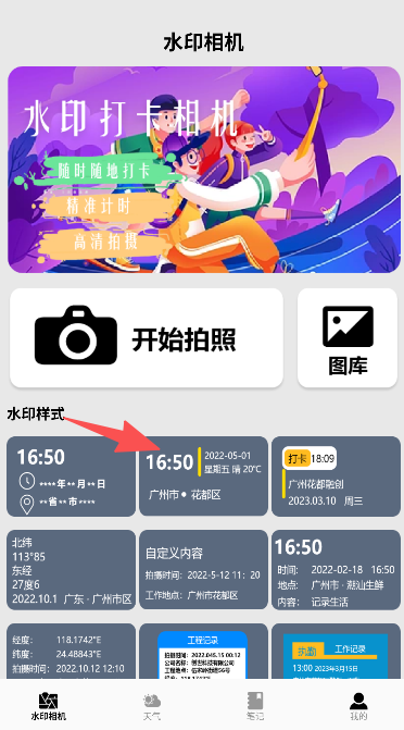 2、水印信息与拍摄环境实时联动,自动获取并更新当前的精准地理位置、时间与气象数据。