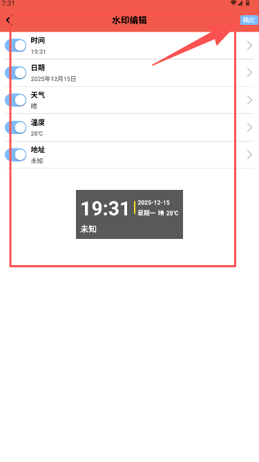 3、支持常规拍照与添加动态水印,所拍照片自动保存带有环境信息水印的图片至本地相册。