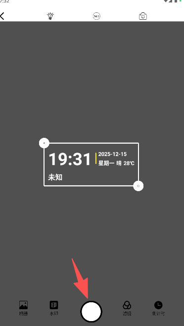 3、在拍照界面,水印信息将实时叠加在画面上,点击中央快门按钮即可拍。