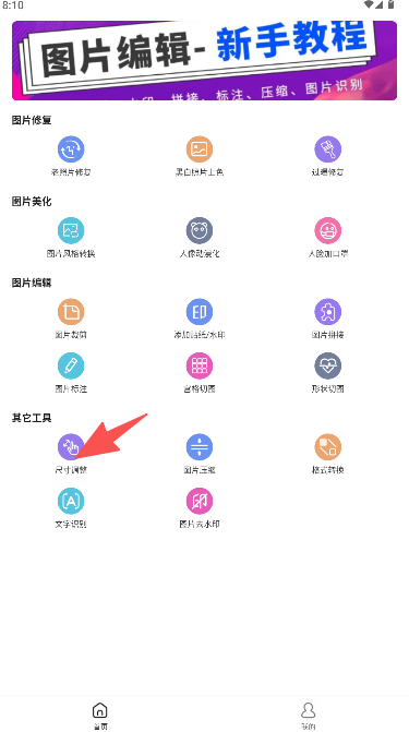 1、在主界面“其它工具”分类中,找到并点击“尺寸调整”图标。