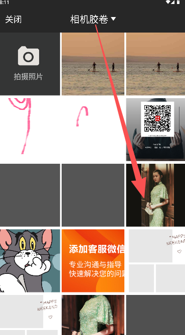 2、在相册图库中选择目标照片,如示例中的绿色旗袍女士图片。