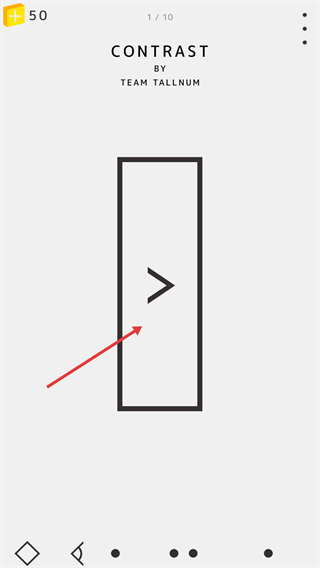 1、进入【CONTRAST】游戏(由【TEAM-TALLNUM】制作),留意左上角【50】与【1/10】标识,点击界面箭头按钮开启关卡挑战。