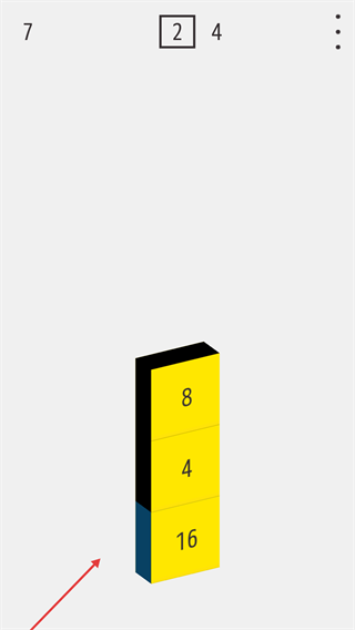 4、上方显示【2】-【4】时,将对应数字的方块堆叠到已有【8】-【4】-【16】方块堆上,持续累积数值推进关卡。