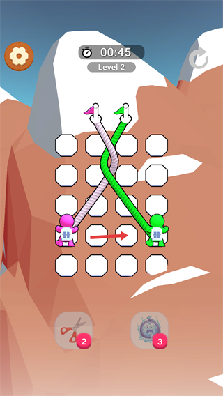疯狂脑洞世界是一款极具挑战性的关卡探险解谜游戏,核心围绕绳索缠绕难题展开,玩家需通过移动调整彩色小人位置,解开彼此间的连线缠绕,采用卡通风格呈现,画面清新明快,操作直观简便无需复杂技巧,各年龄段玩家都能快速上手,内置多个梯度关卡,难度随进程逐步提升,从基础网格场景到复杂空间布局,持续考验玩家的空间逻辑与规划能力,带来沉浸式解谜体验。