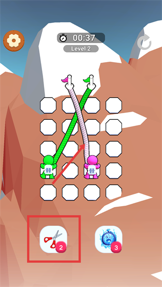 3、点击界面底部的剪刀道具,对交叉的管道进行调整,修正管道的连接路径,达成关卡的通关条件。