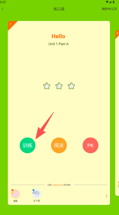 2、进入“练口语”界面后,选择“训练”按钮开始练习。