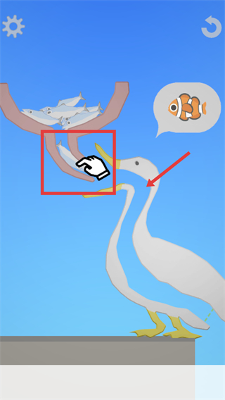 3、继续操作小鱼,将其移动到下方白鸟区域,完成物品的传递流程。