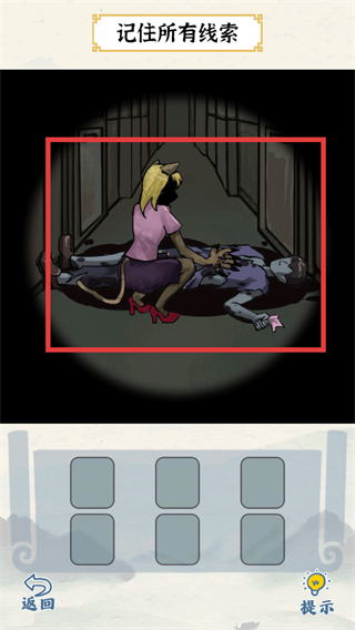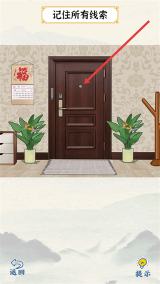 2、进入场景后,留意【记住所有线索】提示,点击门上的【猫眼】观看案发现场。