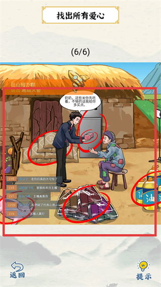 3、在场景内依次点击被圈选的爱心物品,直至进度变为【(6/6)】,完成收集任务。