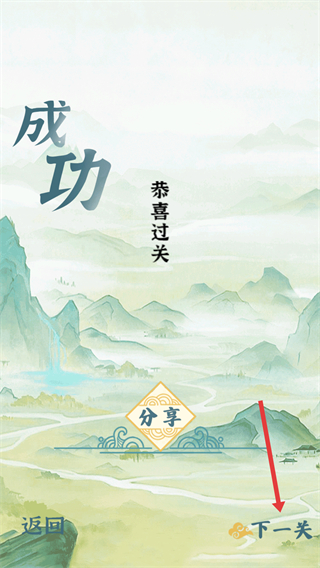 4、通关后界面显示【成功-恭喜过关】,点击【下一关】按钮,可继续挑战新关卡。