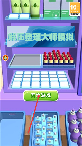 1、进入【解压整理大师模拟】界面,留意【16+-CADPA适龄提示】后,点击【开始游戏】按钮进入关卡选择页面。