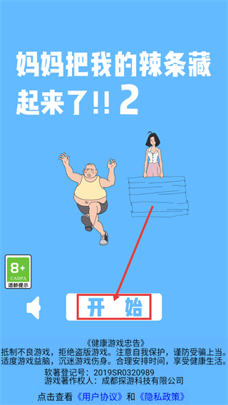 1、确认【8+-CADPA适龄提示】后,点击【开始】按钮进入【妈妈把我的辣条藏起来了!!2】的关卡。