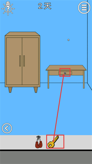 2、在【2天】场景中,拾取地面的【钥匙】,用其打开桌子抽屉,推进辣条寻找的流程。