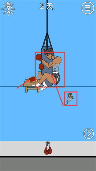 3、在【2天】的拳击场景里,利用出现的【老鼠】转移角色注意力,创造获取辣条的机会。