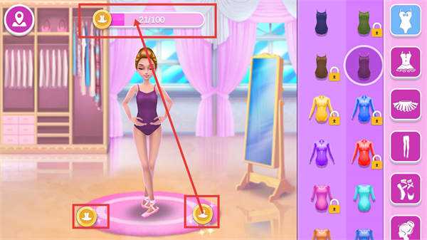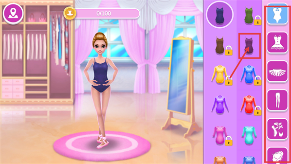 2、服饰库包含海量芭蕾舞短裙、连衣群、舞鞋、发饰等,款式多样风格各异,满足不同装扮搭配需求。
