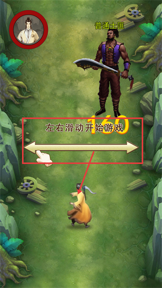1、按照【左右滑动开始游戏】的提示操作,进入与【普通土匪】的对战环节,开启战斗流程。