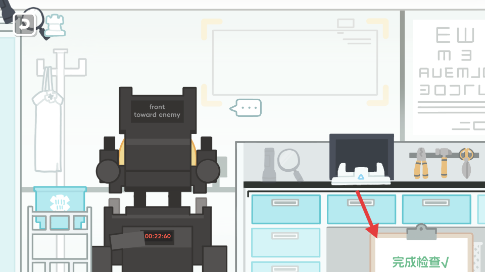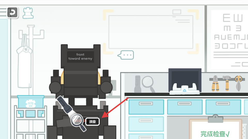 2、在体检室中,对黑色机械装置进行“调查”操作,查看装置细节。