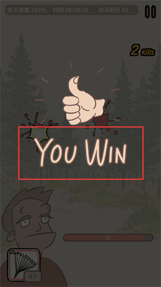 3、消灭足够蚊子后,界面会显示【You-Win】,代表关卡通关,可进入结算界面查看战绩。