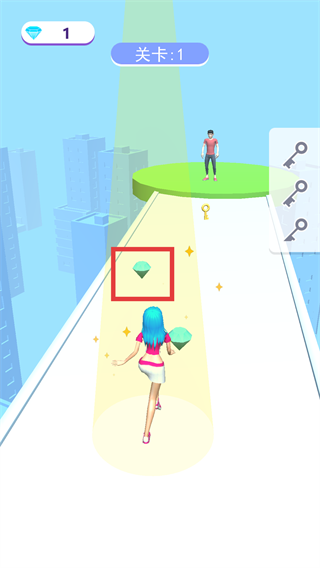 3、冲刺过程中收集【钻石】,积累资源提升收益,朝着终点的目标角色前进。