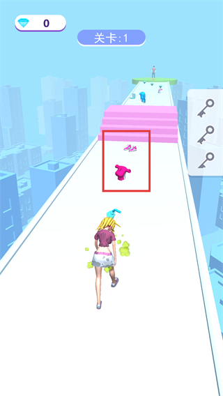 2、奔跑途中拾取【服饰】道具,更换装扮的同时推进关卡,注意避开路径上的障碍。