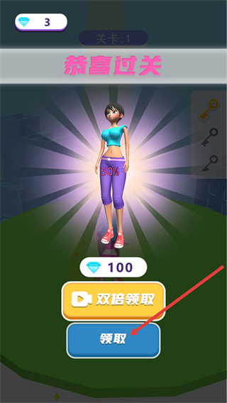 4、通关后点击【领取】获取100钻石奖励,也可选择双倍领取来获得更多资源。