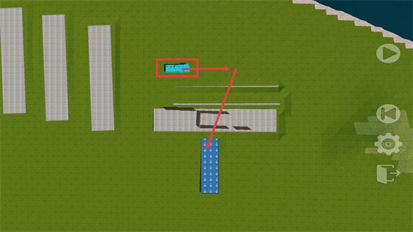 3、操控【蓝色载具】沿路径移动,经过【向下箭头区域】时留意路径转向,保证载具平稳通过该段路线。