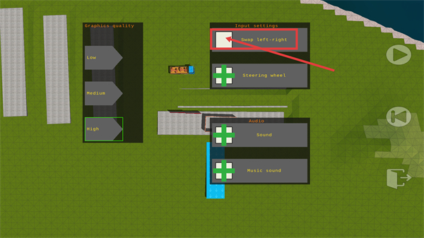 4、在设置界面可将【Graphics-quality】设为【High】,通过【Swap-left-right】切换操控布局,适配【Steering-wheel】的操作方式。